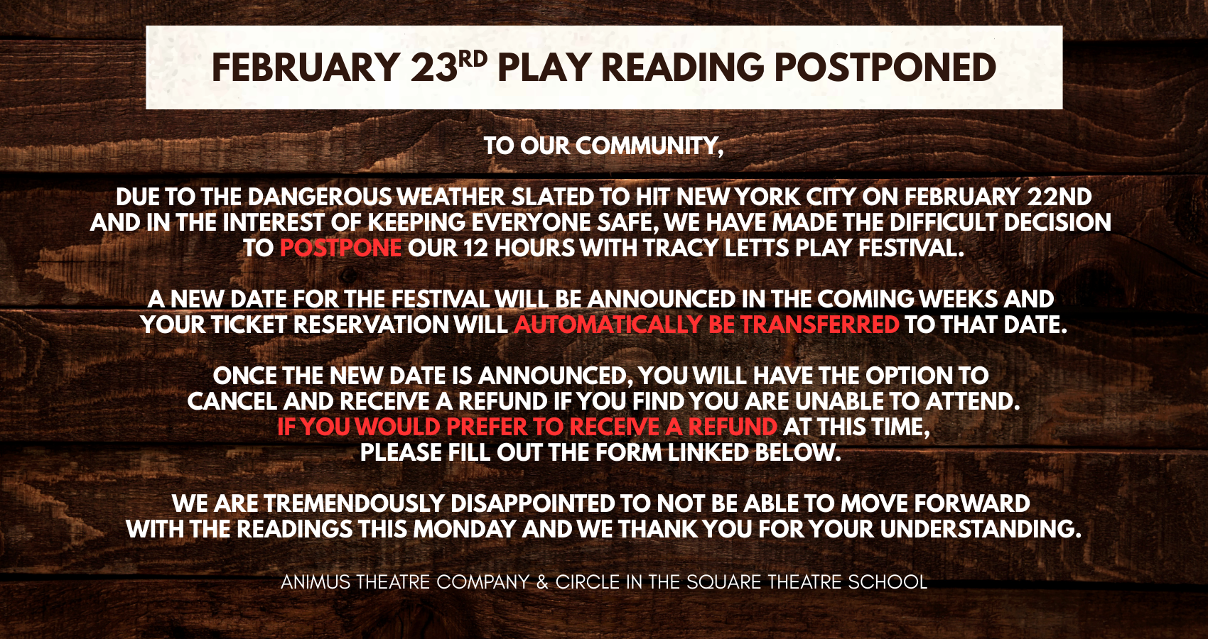 *If you are a Circle alum, please contact our Artistic Director Jeanne Slater at jslater@circlesquare.org